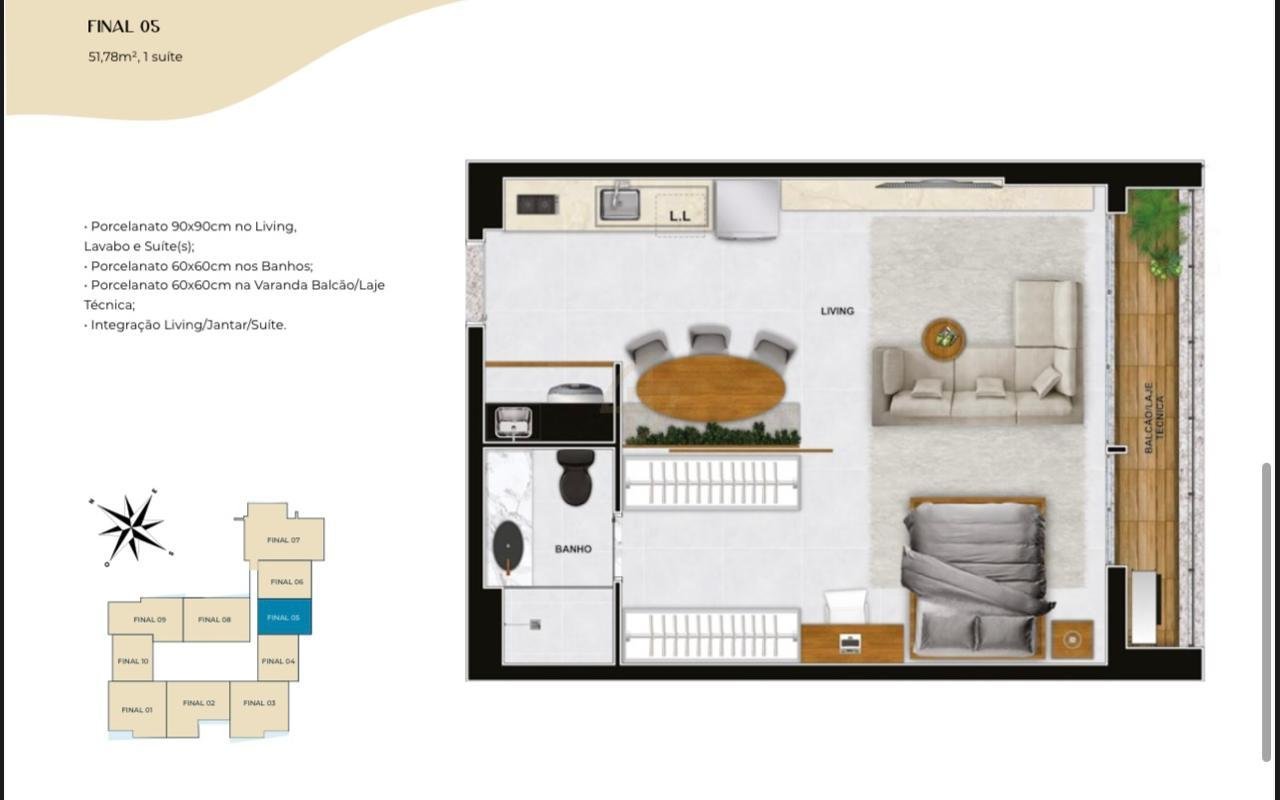 Imóvel Compacto e Funcional - 51,78m² Ideal para quem busca praticidade e conforto em um único ambiente, este imóvel de 51,78 m² oferece uma excelente integração entre os espaços. Perfeito para quem valoriza o aproveitamento inteligente da área e a sensação de amplitude. Sala + Cozinha Integradas: Um ambiente moderno e fluido, perfeito para recepcionar amigos e familiares. Dormitório Aconchegante: Espaço ideal para descanso, com a privacidade necessária. Banheiro: Bem posicionado, oferecendo conforto e praticidade. O apto nunca foi habitado, está pronto para render no Airbnb. --- Venda em parceria com a Sharks Imobiliária.