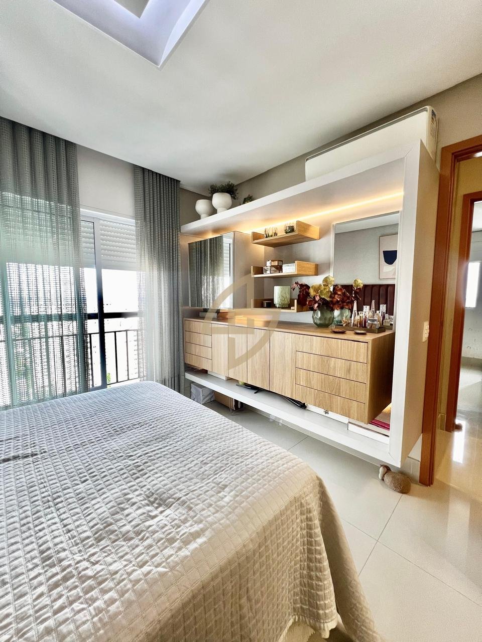 Apartamento Ed. Cora Alto do Bueno 126m² 3 suítes andar alto PORTERIA FECHADA. Apartamento todo decorado com armários planejados em todos os ambientes inclusive banheiros. Armários da "OGGI Ambientes" com manutenção vitalícia. Poente, mas não tem incidência solar direta e todas as janelas e cortina de vidro tem blackout o que traz um grande conforto térmico. Incluso: cooktop, coifa, forno elétrico, microondas,geladeira, lava louças, tv na sala, 5 ar condicionados split, rack da sala de tv. Vagas de garagem convencionais no mesmo nível da rua, não precisando subir ou descer rampa para acesso. Não possui escaninho. Vista permanente, sem nenhum prédio atrapalhando. --- Venda em parceria com a Sharks Imobiliária.