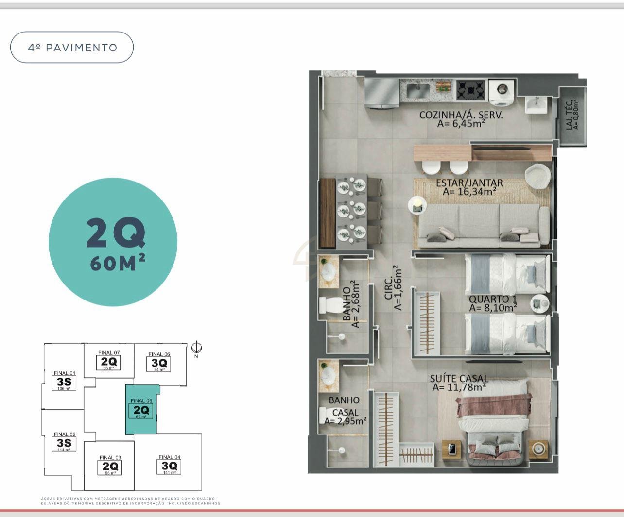 Área total: 60m²