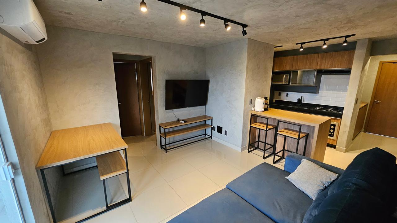 VILA DAS ROSAS IX Apartamento com projeto assinado por escritório renomado, design industrial sofisticado, acabamento em cimento queimado e iluminação 100% em LED. Imóvel composto por 2 quartos, sendo 1 suíte, ambos com camas de alta qualidade, armários amplos e sensores de presença. Banheiros modernos, com box em blindex e espelhos orgânicos. Sala aconchegante equipada com sofá-cama e TV de 55 polegadas com integração Alexa e comando de voz. Quartos climatizados com ar-condicionado WindFree e automação via Alexa. Cozinha e lavanderia totalmente equipadas. Varanda com vista livre. Conta com 1 vaga de garagem e elevador. --- Venda em parceria com a Sharks Imobiliária.
