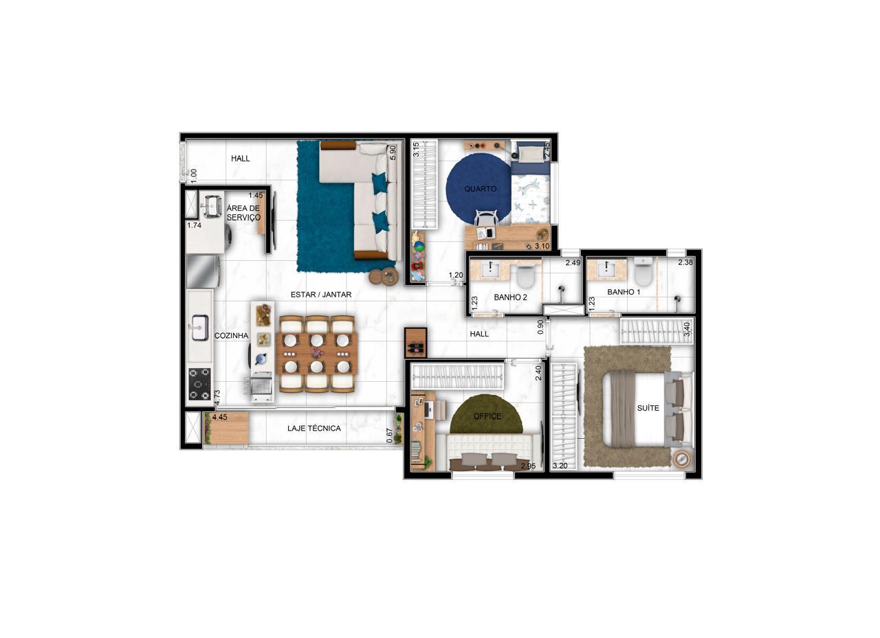 Área total: 59m²