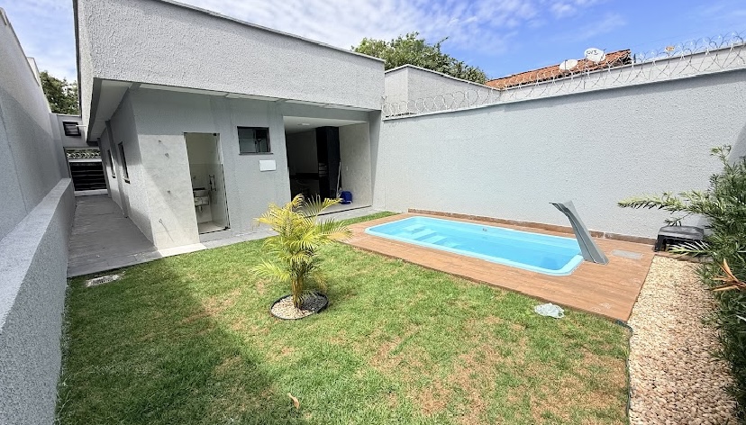 CASA À VENDA - SETOR HELVÉCIA R$ 750.000 270 m² de lote 135 m² de construção 3 quartos 3 banheiros Sala com pé direito duplo Cozinha com bancadas em granito Lavanderia Garagem para 2 carros Área gourmet com churrasqueira Paisagismo completo Piscina aquecida --- Venda em parceria com a Sharks Imobiliária.