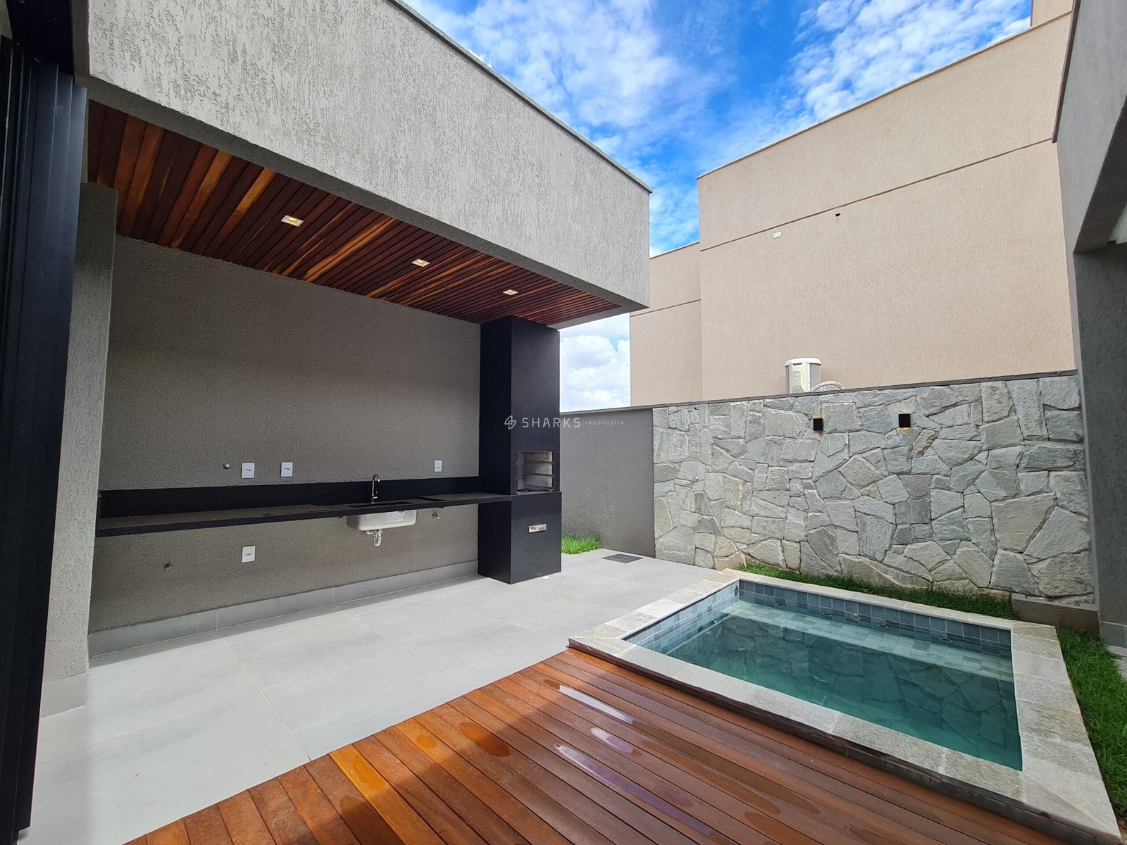 Terreno: 300m² Casa 162m² A casa possui 300m² de terreno com uma construção de 162m². Oferece 3 suítes, incluindo uma suíte master com closet, além de 1 banheiro de serviço e 1 lavabo. Destacam-se a área gourmet com churrasqueira e uma piscina com hidromassagem revestida com pastilhas Eliane Java Mar. Os acabamentos são de alta qualidade, incluindo louças e metais Deca e Docol, porcelanato em toda a casa e bancadas em granito preto São Gabriel. A casa também conta com três pontos de gás, esquadrias de alumínio e sistema de iluminação integrado. --- Venda em parceria com a Sharks Imobiliária.