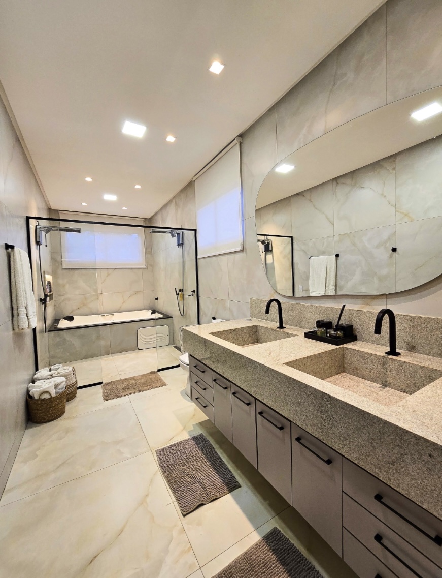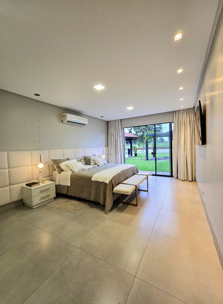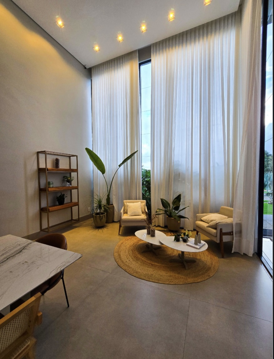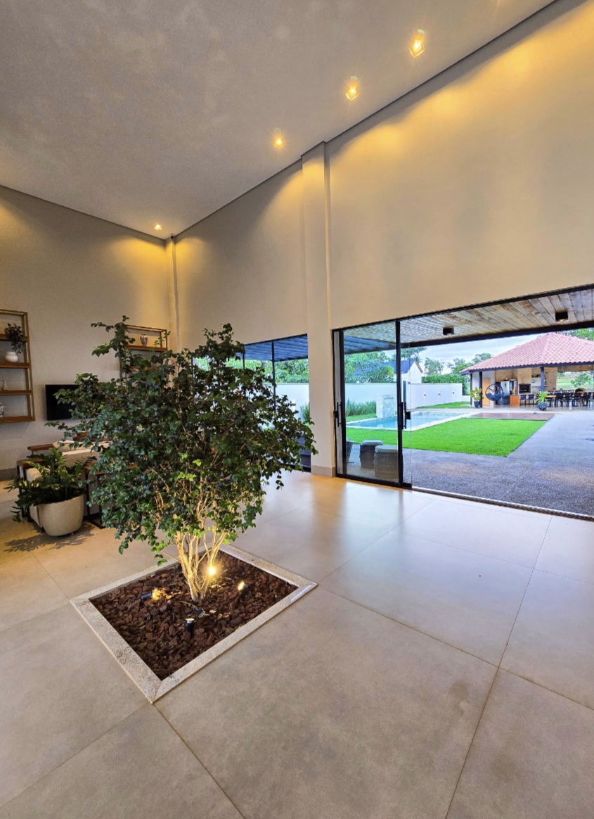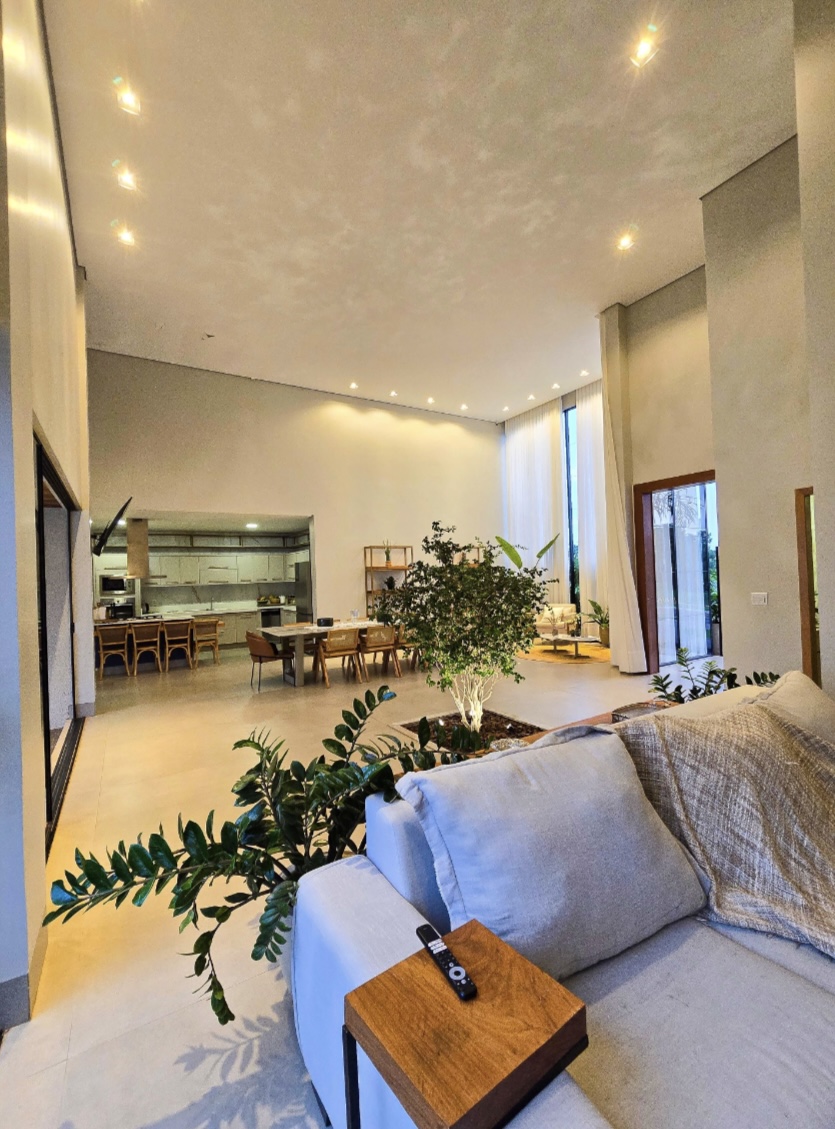 Residência exclusiva com 615 m² de área construída em lote de 1.280 m², frente a área verde preservada do condomínio. Projeto sofisticado que une conforto, integração com a natureza e funcionalidade. 4 suítes amplas, todas com saída para a área de lazer Suíte máster com closet, hidromassagem, duas duchas e duas cubas Escritório com banheiro para home office, oferecendo tranquilidade na rotina de trabalho Completa em armários e climatizada em todos os ambientes (será vendida como nas fotos, porteira fechada) Área social perfeita para receber: Espaço gourmet com churrasqueira a carvão Piscina aquecida com deck de madeira Banheiros de apoio e pergolado com lareira externa Jardim com irrigação automatizada Energia fotovoltaica e poço artesiano Porte-cochère que facilita a recepção de convidados e o dia a dia do morador e garagem para até 8 carros sendo 4 vagas cobertas Um imóvel que combina sofisticação, conforto e sustentabilidade, em um dos endereços mais desejados da região. --- Venda em parceria com a Sharks Imobiliária.