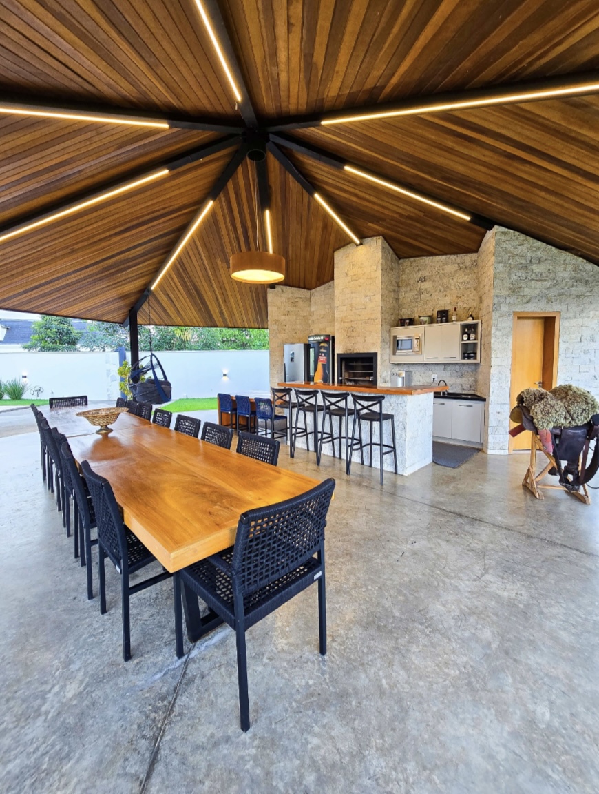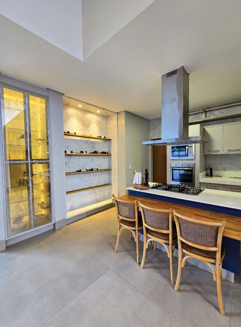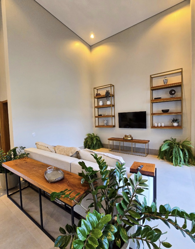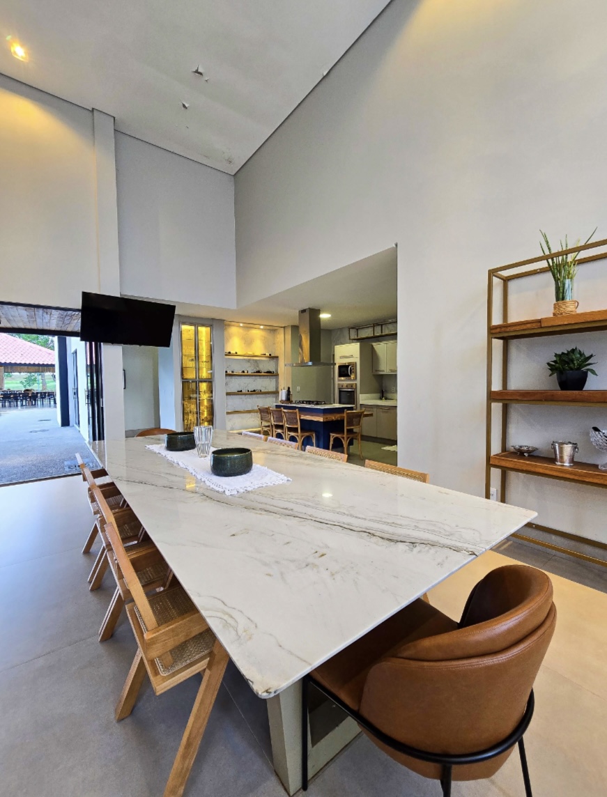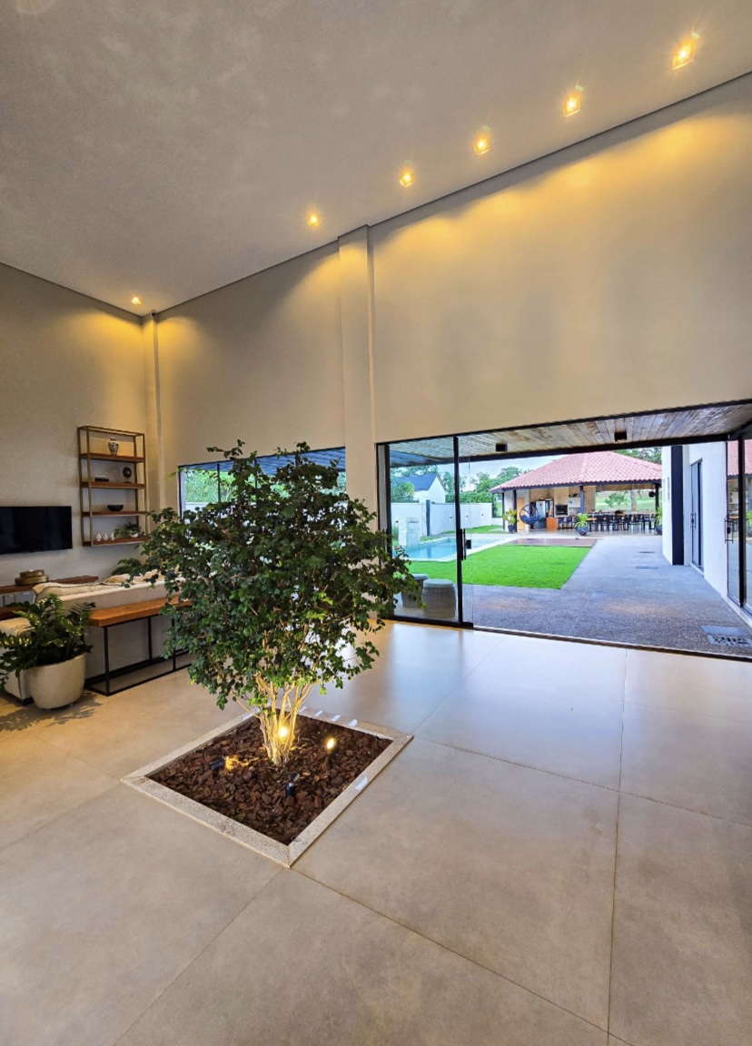 Residência exclusiva com 615 m² de área construída em lote de 1.280 m², frente a área verde preservada do condomínio. Projeto sofisticado que une conforto, integração com a natureza e funcionalidade. 4 suítes amplas, todas com saída para a área de lazer Suíte máster com closet, hidromassagem, duas duchas e duas cubas Escritório com banheiro para home office, oferecendo tranquilidade na rotina de trabalho Completa em armários e climatizada em todos os ambientes (será vendida como nas fotos, porteira fechada) Área social perfeita para receber: Espaço gourmet com churrasqueira a carvão Piscina aquecida com deck de madeira Banheiros de apoio e pergolado com lareira externa Jardim com irrigação automatizada Energia fotovoltaica e poço artesiano Porte-cochère que facilita a recepção de convidados e o dia a dia do morador e garagem para até 8 carros sendo 4 vagas cobertas Um imóvel que combina sofisticação, conforto e sustentabilidade, em um dos endereços mais desejados da região. --- Venda em parceria com a Sharks Imobiliária.