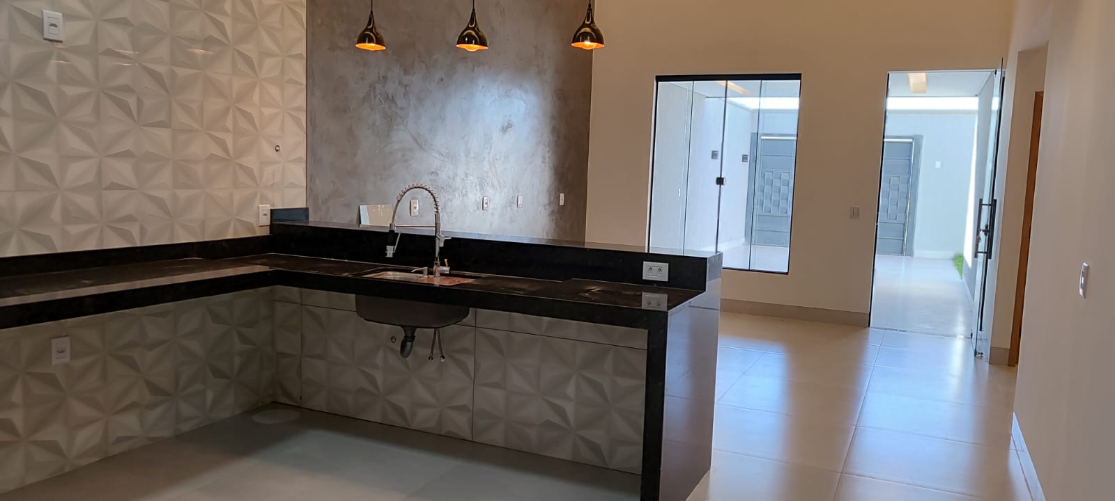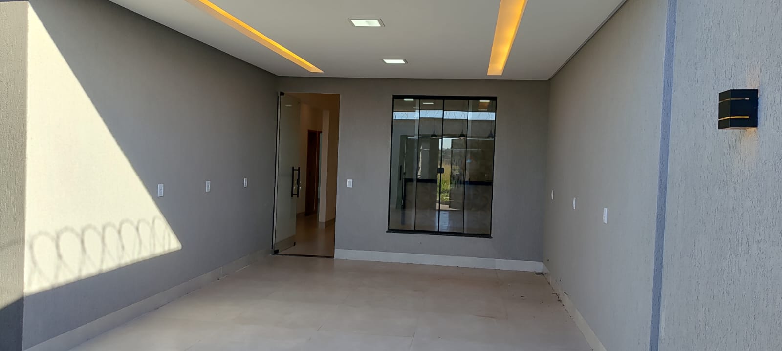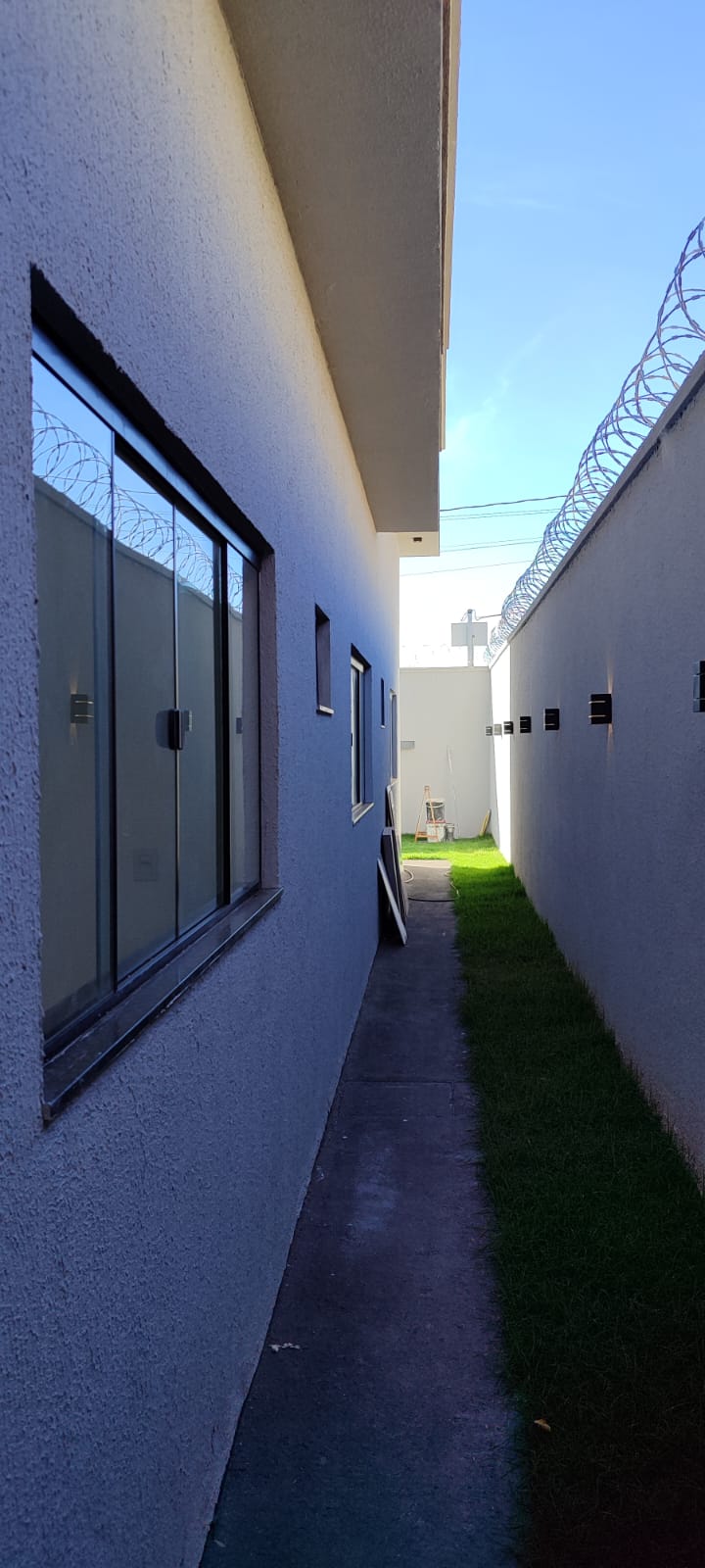 Casa a venda 3 quartos sendo 1 suíte 1 banheirosocial com nicho sala pé direito duplo cozinha lavanderia corredor na lateral garagem para 2 carros toda no porcelanato ponbto de ar condicionado nos quartos sanca na sala iluminação led portas e janelas blindex concertina lote de 200 mts área construída de 144 mts --- Venda em parceria com a Sharks Imobiliária.
