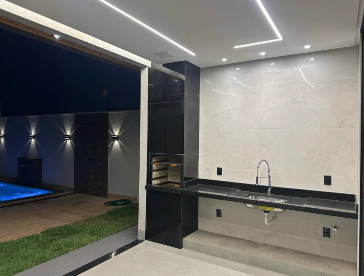 Casa a venda Setor Três Marias próximo ao Atacadão Costa - 3 Suítes plenas sendo uma com closet - Área Gourmet com churrasqueira, e preparação para caixas de som embutidas - Lavabo c/ pia esculpida no mármore branco Paraná - Piscina c/ hidromassagem, cascata e Aquecimento Solar - Sala com pé direito duplo de 5,00 metros - Porta principal ripada com painel metálico - Garagem p/ 4 carros - Sistema de segurança (câmeras, alarme e cerca elétrica); - Preparação com fiação para som na sala e área gourmet; - Porcelanato medida 83x83 cm c/ roda pé embutido - Projeto luminotécnico com leds - Esquadrias linha gold - Paisagismo - Interfone - Tintas usadas marca Leinertex - Preparação p/ água quente (tubulações e conexões, torneiras e registros monocomando) - Preparação p/ energia solar (tubulação embutida na parede) - Preparação para ponto de energia p/ recarga de carro elétrico na Garagem - Esquadrias 100% --- Venda em parceria com a Sharks Imobiliária.