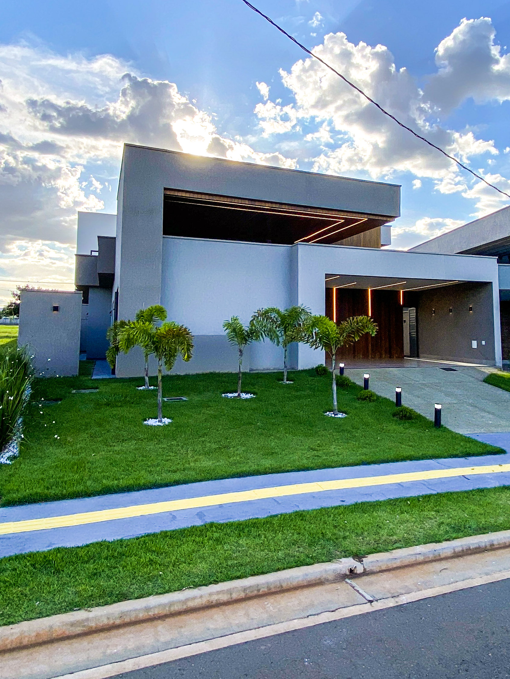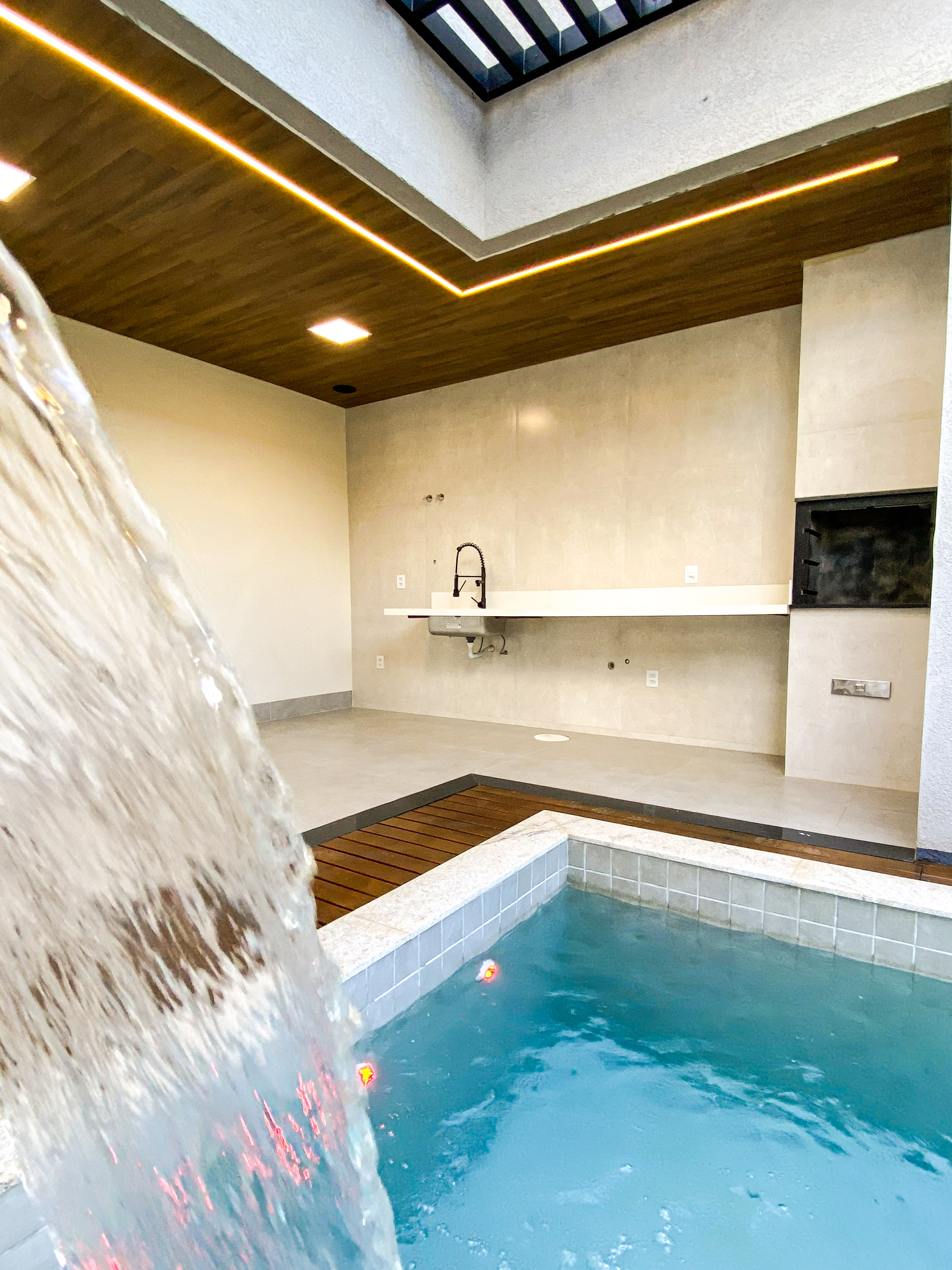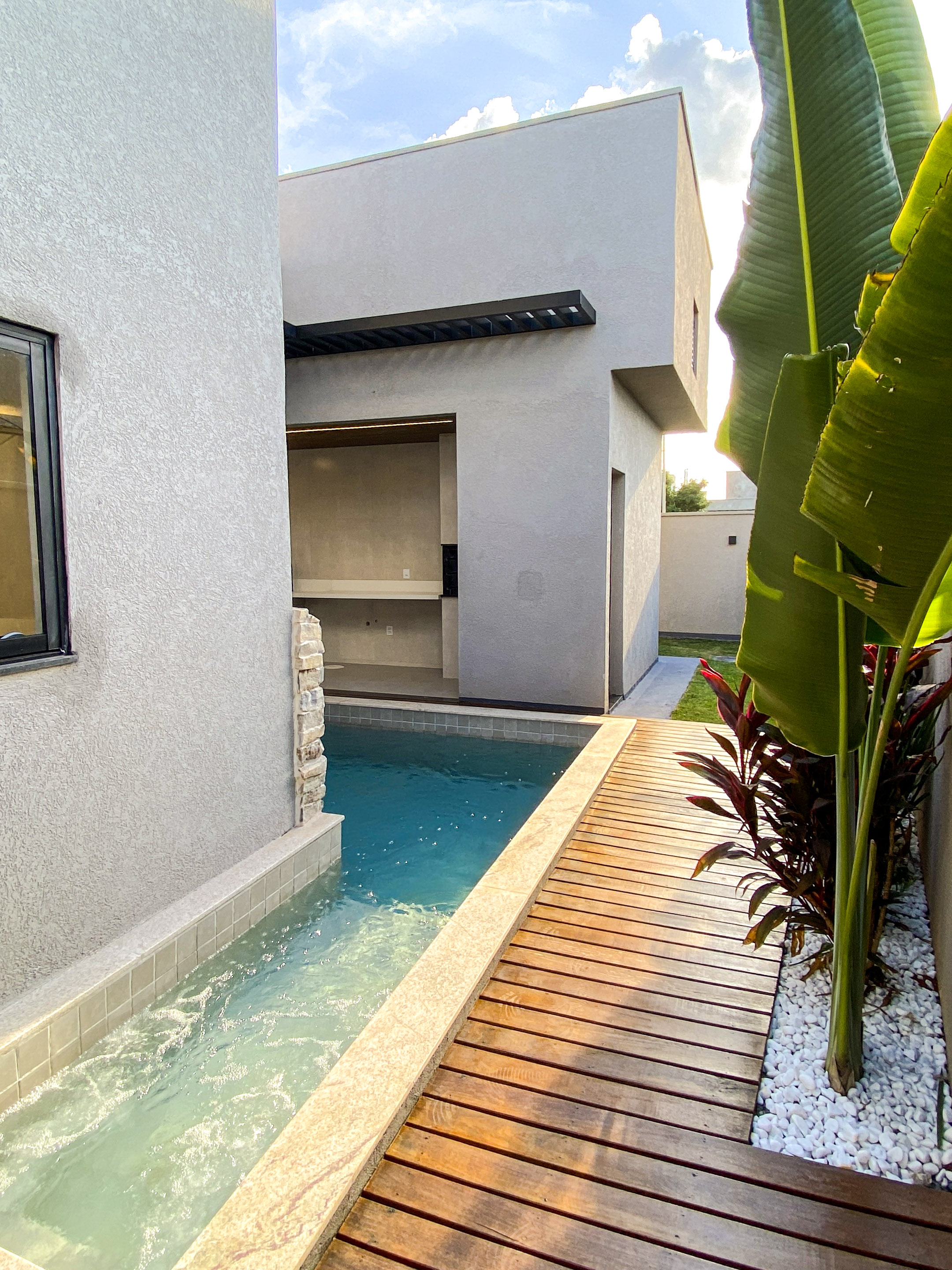 Terreno 371,52m² Construção 185,71m² Fachada Sol Nascente 4 suítes, sendo 1 master Sala ampla com lustre elegante Cozinha equipada com coifa, cooktop e bancadas de quartzo Área gourmet com churrasqueira a carvão e som ambiente Piscina com aquecimento solar, hidromassagem, cascata e deck de madeira Garagem para 2 carros Lavabo para visitantes Piso Porcelanato Portinari e iluminação premium Paisagismo completo Esquadrias de alumínio e portas de luxo --- Venda em parceria com a Sharks Imobiliária.
