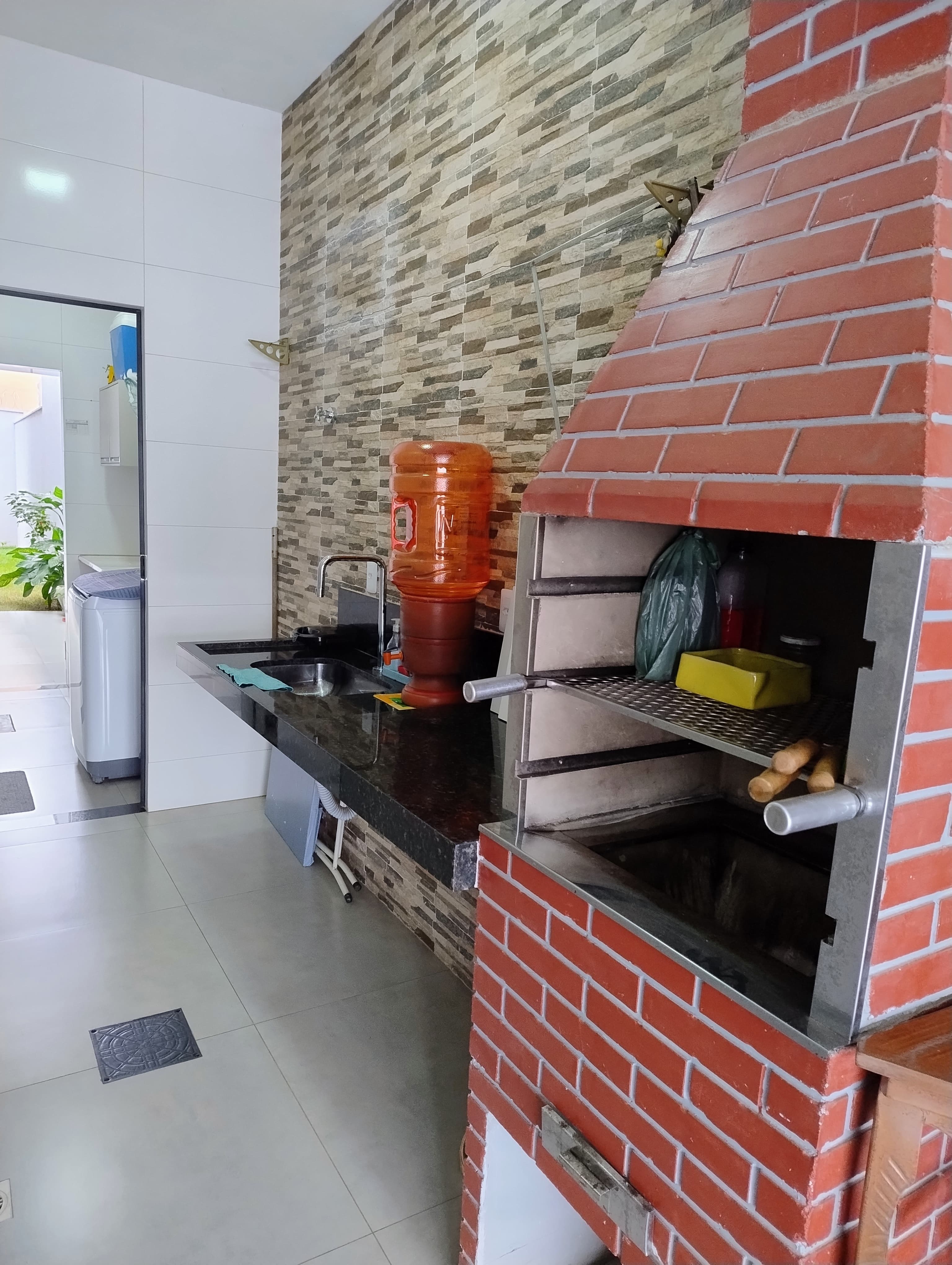 Casa térrea sendo 3/4 com suíte Área construída: 116m² Área total: 186m² Três quartos, sendo uma suíte; três vagas de garagem. A casa será vendida com os seguintes móveis e benfeitorias: Quarto suíte: 1 armário três portas c/maleiros MDF, cor noce amêndoa. Banheiro suíte: 1 armário MDF, cor noce mare embaixo do lavatório; 1 armário duas portas c/espelho em cima do lavatório; box vidro jateado. Banheiro social: 1 espelho MDF branco; box vidro jateado. Quarto 2: Uma cama box de casal. 4 varais de cortina (1 na sala, três quartos). Cozinha: 1 armário debaixo da pia c/ seis compartimentos; 1 fogão cook top 4 bocas e armário de duas portas, cor areia; duas cadeiras para acompanhar o balcão americano mármore verde Ubatuba. Lavanderia: 1 armário de duas portas MDF, cor areia. Cozinha Gourmet: churrasqueira e pia mármore verde Ubatuba. 1 interfone. 1 motor eletrônico portão. Antena TV/HD 4 pontos. Concertina na frente e fundo da casa. Portas de vidro plotadas. Obs.: documentação em dias. Financia! --- Venda em parceria com a Sharks Imobiliária.