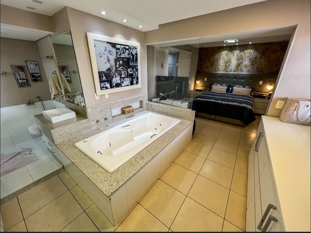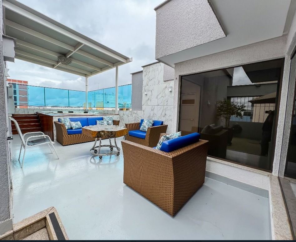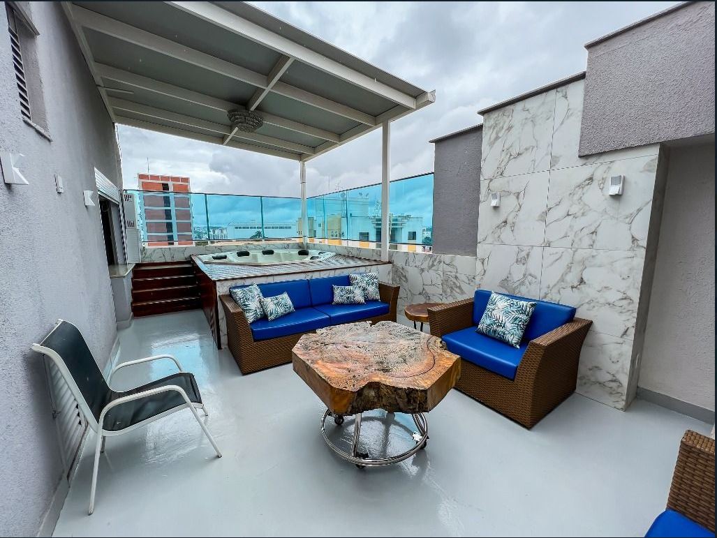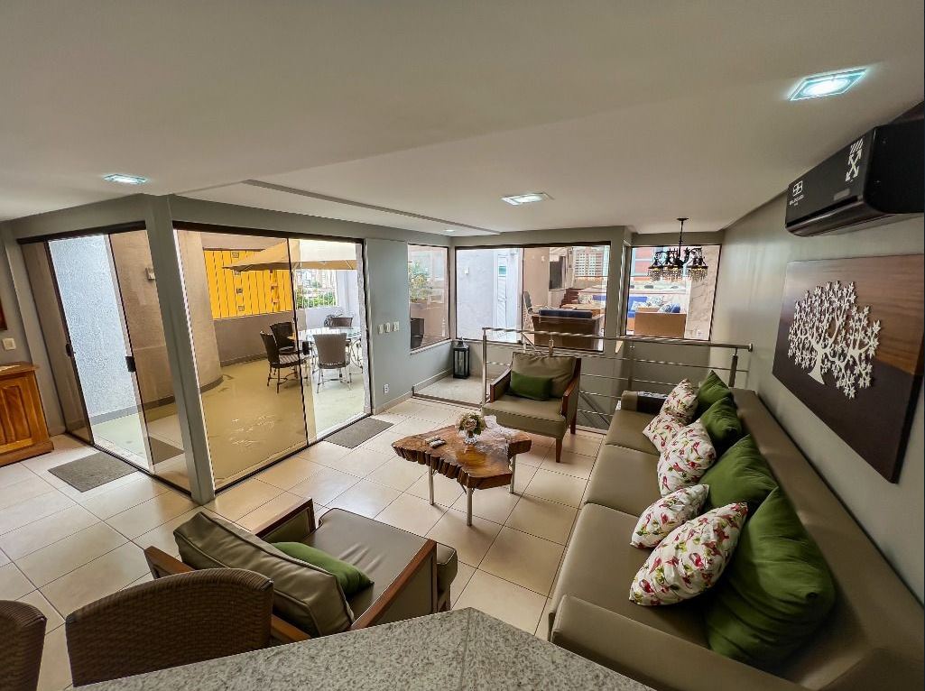 Cobertura Duplex com 5 Quartos e 4 Vagas Ampla e completa, com 5 quartos (3 suítes), 5 banheiros, salas de TV, jantar e estar, escritório, 2 cozinhas e área de serviço. Destaque para suíte master com hidromassagem, SPA com aquecimento a gás, sauna, bar e área externa mobiliada em estilo rústico. Todos os quartos com ar-condicionado. Possibilidade de venda mobiliada (valor a consultar). Condomínio com salão de festas e localização excelente, próximo a supermercados, farmácias, clínicas e comércios em geral. --- Venda em parceria com a Sharks Imobiliária.
