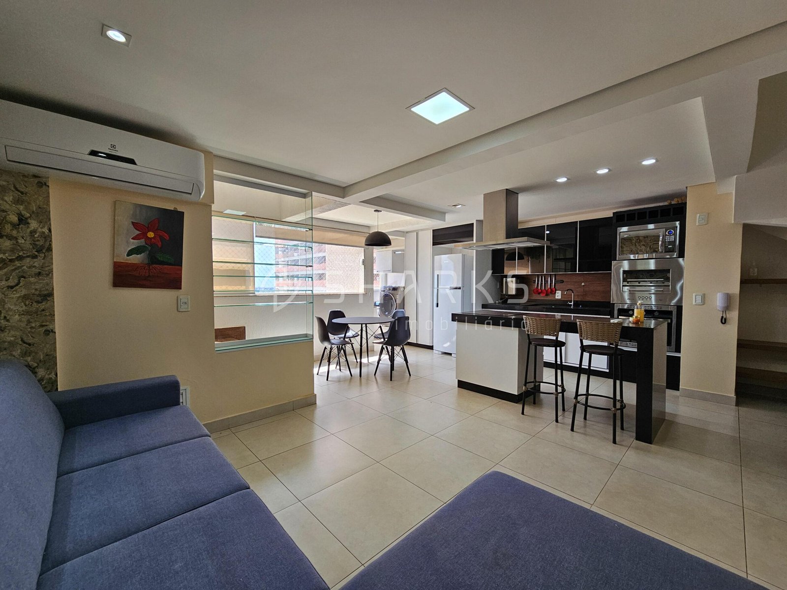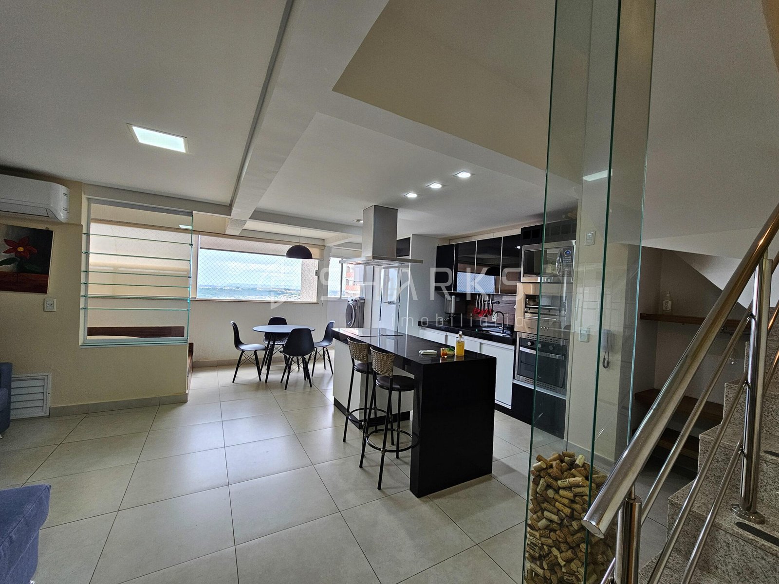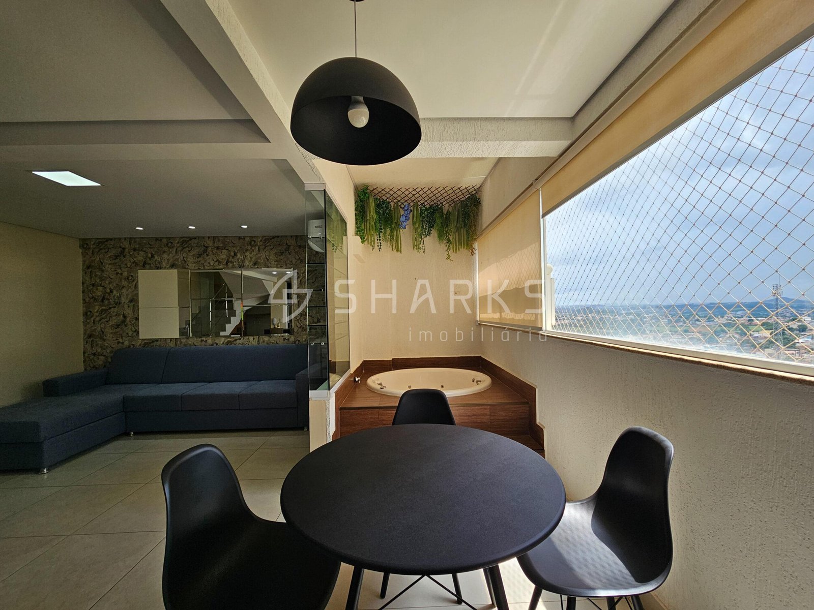 Duplex Semi Mobiliada São 83 metros 2 suites Lavabo Completa em armários Microondas Forno Elétrico Churrasqueira a gás Torre quente Adega 2 vagas Andar intermediário Jacuzzi na Varanda Escaninho Vista livre para o Alphaville --- Venda em parceria com a Sharks Imobiliária.