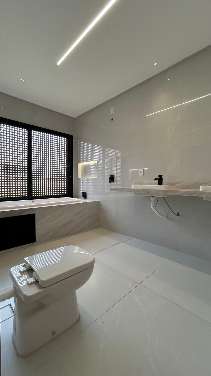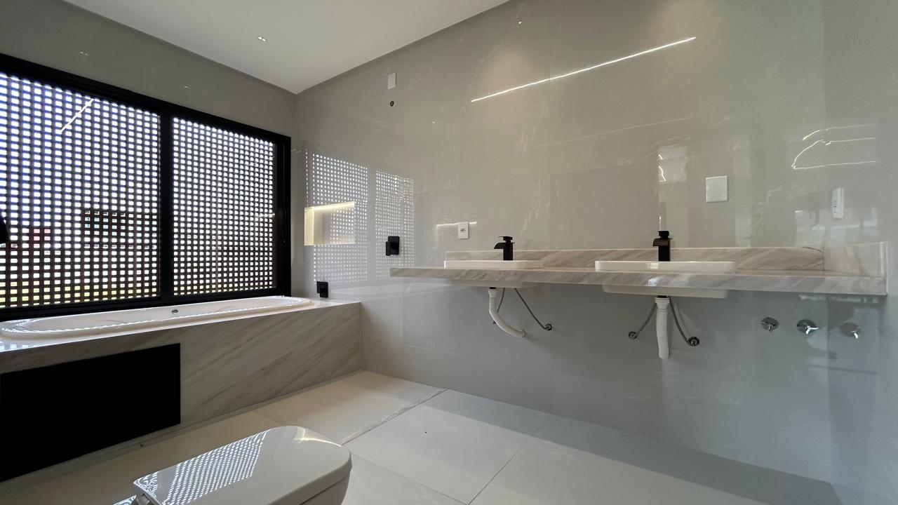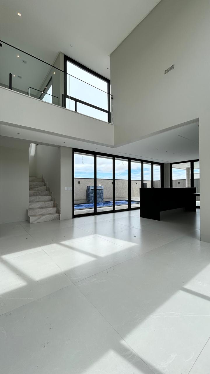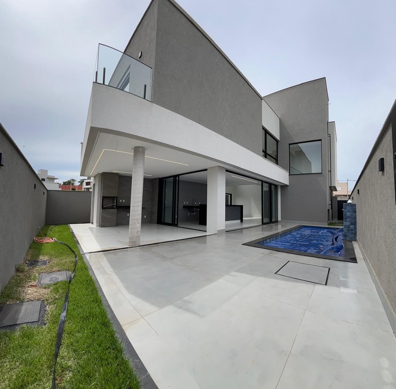 Sofisticação, imponência e integração em um projeto moderno, com ambientes amplos, acabamento atual e excelente presença arquitetônica. Terreno: 300 m² Área construída: 215,49 m² Destaques do imóvel: • 4 suítes plenas • Banheiro social / apoio no pavimento inferior • Sala ampla com pé-direito duplo, trazendo imponência e muita iluminação natural • Cozinha integrada com ilha e acabamento em marmoraria fina • Esquadrias de alto padrão com persianas automatizadas • Porcelanato 1,20 x 1,20 em todo o imóvel • Projeto luminotécnico em LED, interno e na fachada • Garagem para até 4 carros Lazer e área externa: • Piscina revestida em pastilha • Aquecimento solar na piscina • Cascata • Espaço externo amplo, ideal para receber • Paisagismo com iluminação O grande diferencial desse sobrado está na combinação de arquitetura moderna, pé-direito duplo, integração total dos ambientes e acabamento de alto padrão, entregando um imóvel novo, elegante e pronto para morar. Localizado no Jardins Barcelona, em um condomínio consolidado e valorizado, ideal para quem busca segurança, conforto e qualidade de vida. --- Venda em parceria com a Sharks Imobiliária.